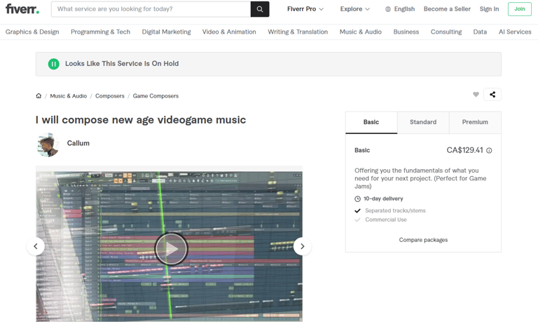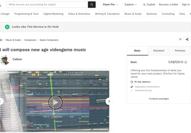 I decided to put myself and my work out on the internet in as many different ways as possible. This website being a central hub in which people can discover my work and open up doors to new opportunities. I also created a fiver page to freelance videogame music perfect for game-jams and other small hobbyist operations. My page featured multiple options for my services and a short demo video.