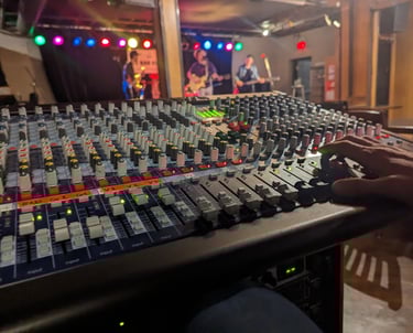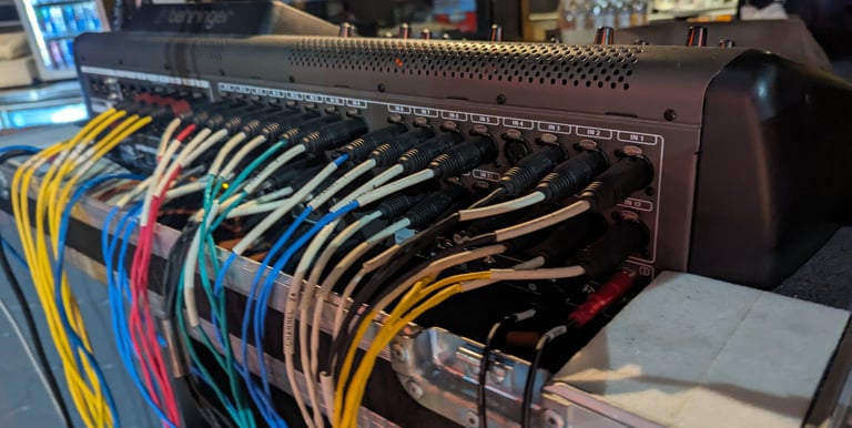 As we set up, I began to realize that these musicians were likely more seasoned than I initially thought. Their conversations about tours in distant countries like Japan and Spain hinted at their extensive experience. Despite the analog nature of the soundboard, which wasn't my forte, I tackled setup with confidence. However, a monitor issue during setup tested my troubleshooting skills. Despite my efforts, the problem persisted until a seasoned tech(Cameron) came to the rescue. It turned out someone had inadvertently rewired the board during a previous shift.